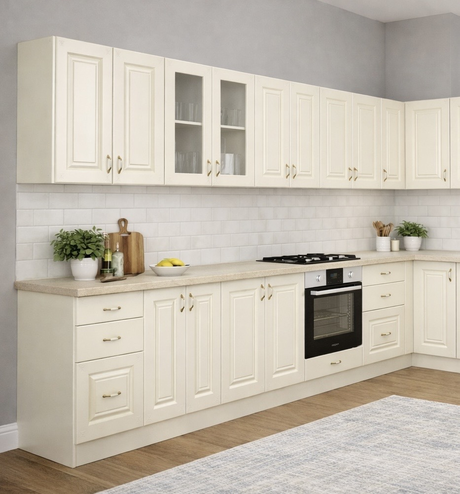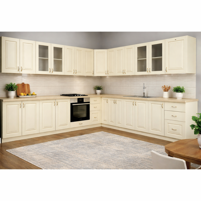 Bucatarie Roma Colt 2, (2.6 x (0.90x0.60 colt) x 2.6 m) MDF - Crem
